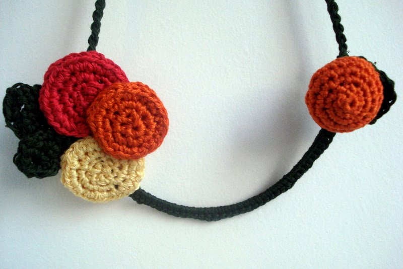 The above Bra Pad necklace uses the extra inserted pads that come with many bras but are often unnecessary. And the necklace below uses the under wires that can be found in many bras. If you are like the author and cannot stand the poking and jabbing of the under wire just take it out and turn it into this cute crochet necklace.